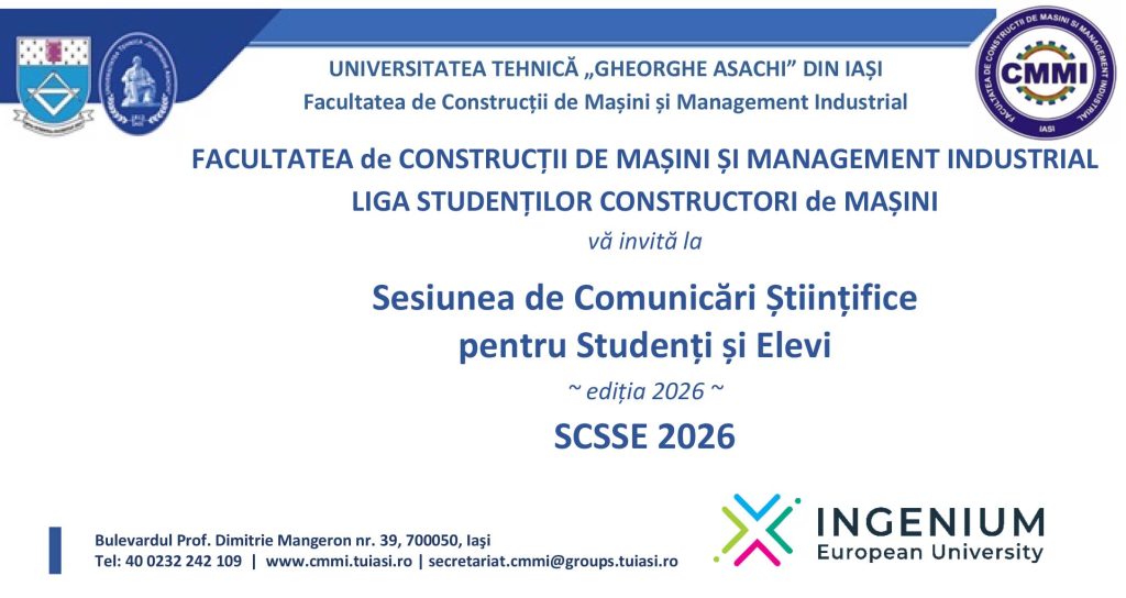 - Intelligent Manufacturing and Automation (I.M.A. – specializare în limba engleză