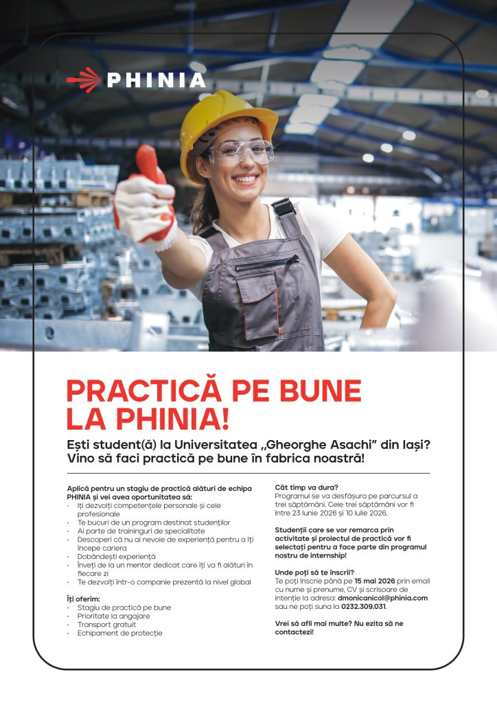 - Înscrierea pentru practică se va face direct de către studenți printr-un e-mail cu CV-ul și o scrisoare de intenție. Acestea vor fi trimise către adresa dmonicanicol@phinia.com