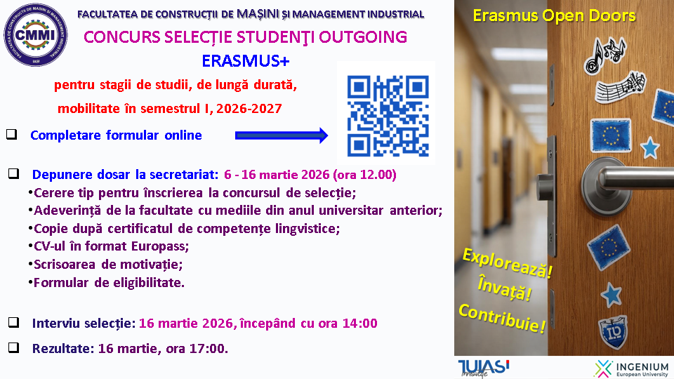 Program ERASMUS+ Facultatea de Construcții de Mașini și Management Industrial